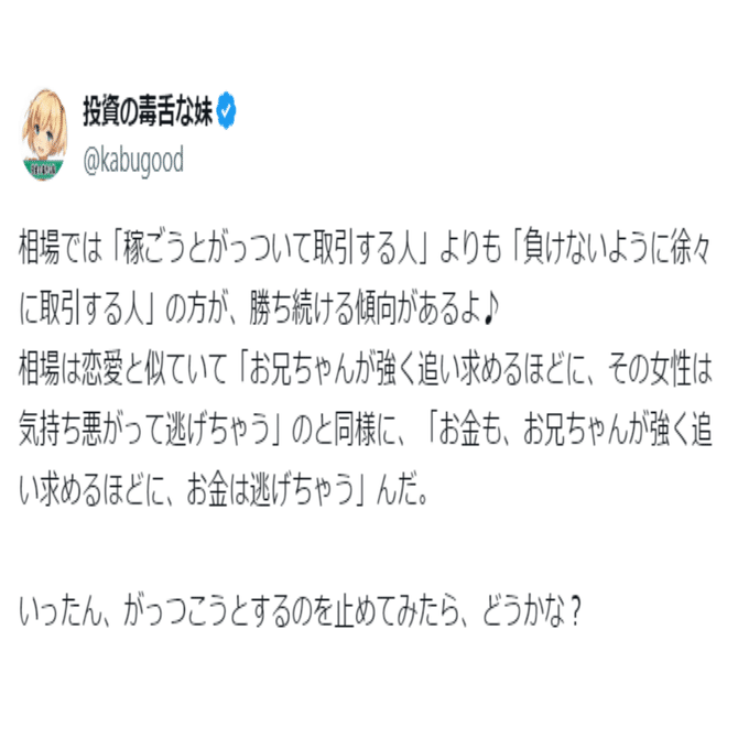 だったら、恋愛と同じく、相場でお兄ちゃんにできる有効な手段は限られている。
